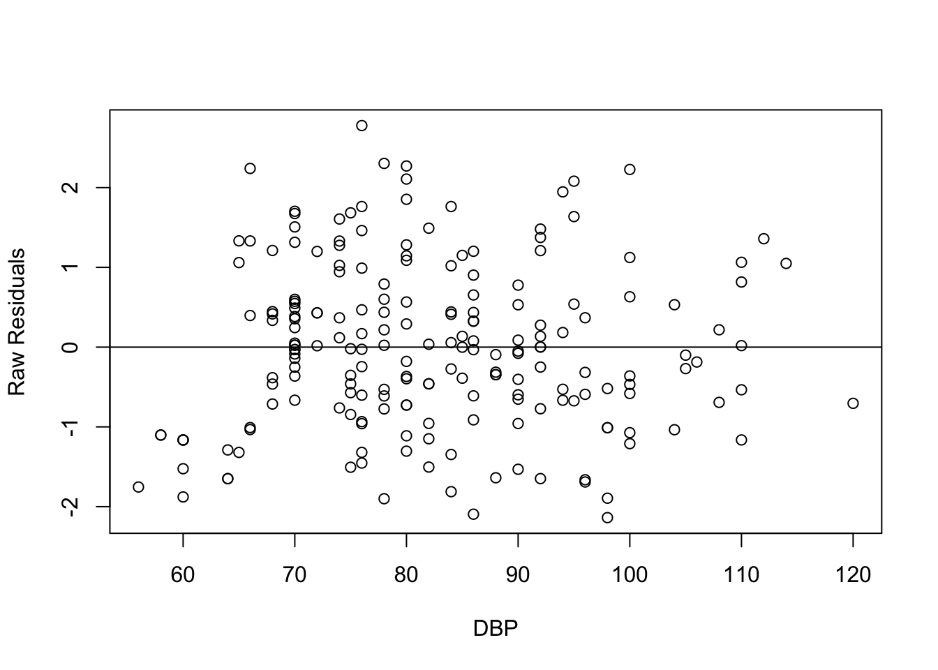 abline(0, 0) # normal, linear, equal variance